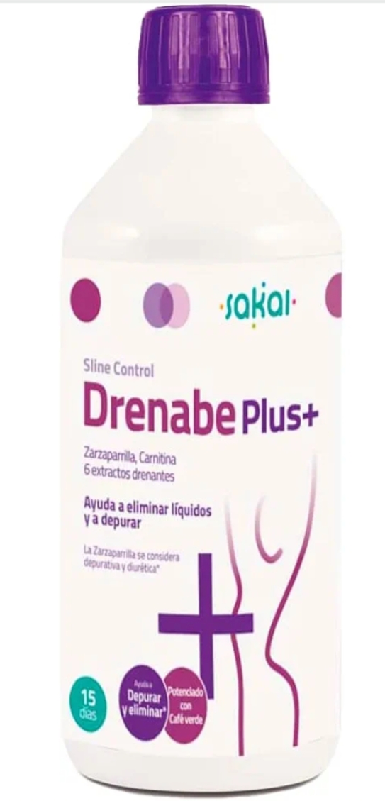 Sline Control Drenabe Plus de Sakai complemento alimenticio a base de L-carnitina, Café verde, Té verde, Cola de caballo, Abedul, Vara de oro, Ortosifón, Diente de león y Alcachofa. Ideal para drenar el exceso de líquidos acumulados.