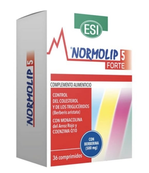 Control del colesterol y de los triglicéridos (Berberis aristata) con Monacolina de Arroz Rojo y Coenzima Q10. Complemento alimenticio a base de extracto titulado de Berberís aristata, Arroz rojo fermentado por el Monascus purpureus, Cardo mariano, Ácido fólico, Coenzima Q1 O, con Cromo y Policosanoles. La Berberís aristata ayuda a mantener niveles normales de colesterol, promueve el control de los triglicéridos plasmáticos y ayuda a regular la funcionalidad del sistema cardiovascular. El cardo mariano es útil para la función hepática, las funciones depurativas del organismo y como antioxidante. El folato contribuye al metabolismo normal de la homocistefna. El cromo contribuye al mantenimiento de niveles normales de glucosa en sangre.